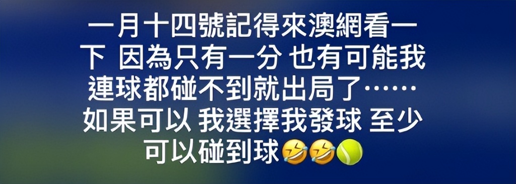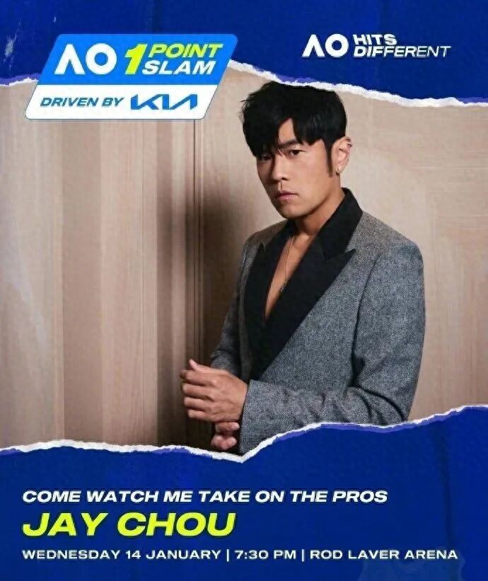 1月12日,周杰倫宣布將在1月14日晚上7:30以球員身份參加澳網(wǎng)一球制勝挑戰(zhàn)賽(1 point slam):“如果最后勝利者是我,一百萬(wàn)美元,全部捐出。”
