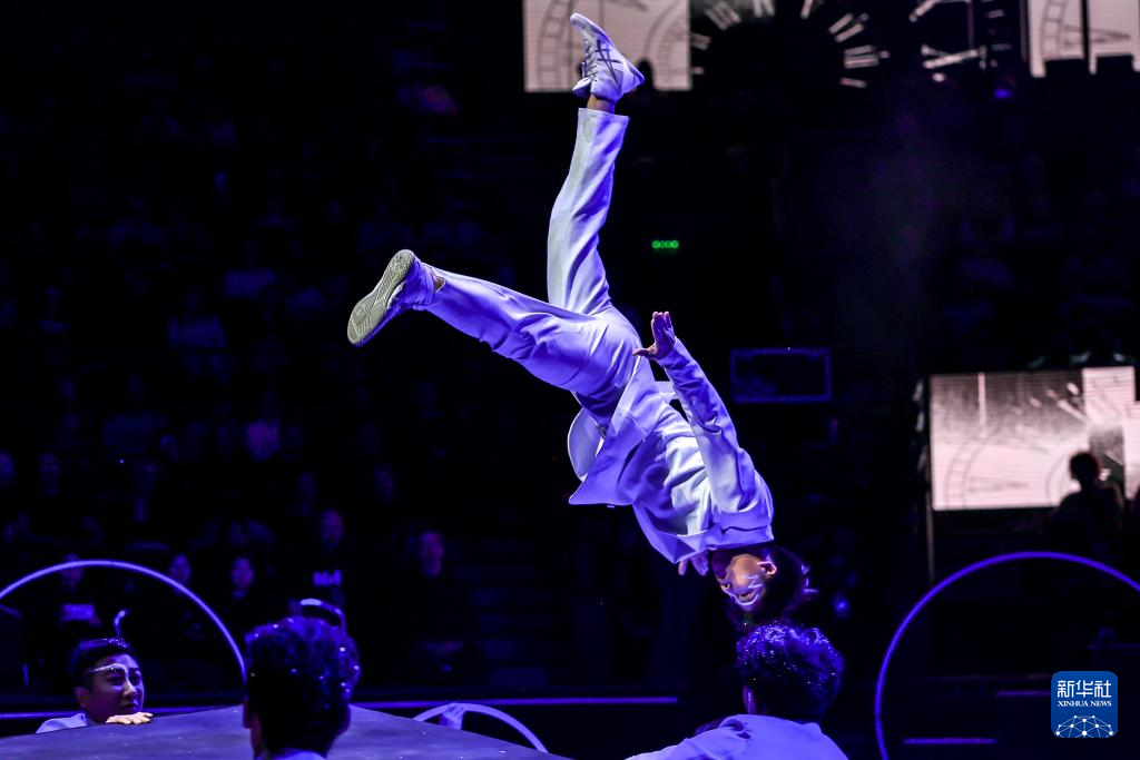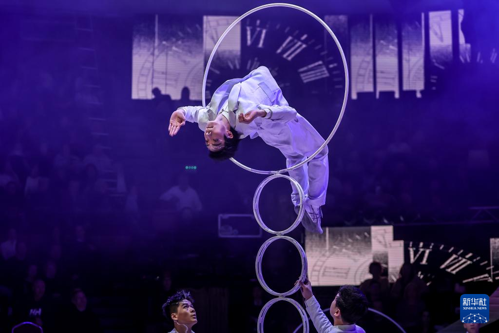 ??1月12日,在匈牙利首都布達(dá)佩斯,中國(guó)雜技團(tuán)演員在表演《時(shí)光》。