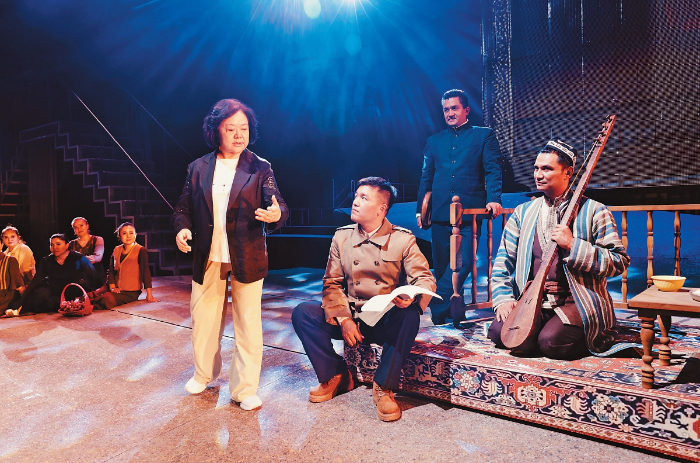 無論是《漢口茶港》中茶商抗日的英雄氣概,《奧涅金》中對真摯愛情的永恒追求,還是《原野》中對人性復(fù)雜性的深刻揭示,她的作品總能在具體故事中提煉出超越時(shí)代的價(jià)值。而對于《木卡姆戀歌——萬桐書》,她更看重作品在鑄牢中華民族共同體意識(shí)方面的現(xiàn)實(shí)意義,“無論從當(dāng)年萬桐書先生到新疆搶救木卡姆,還是我們劇組本身,我的執(zhí)行導(dǎo)演是維吾爾族,演員隊(duì)伍也是多民族的,整個(gè)劇組就是一個(gè)大家庭?!?/p>